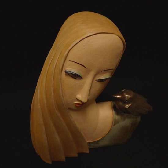 Ich habe diese Geschichte von der Weissen Frau gelesen und überlegt wie sie sich gefühlt haben mag. Getrieben von starken Gefühlen, vielleicht auch von unlauteren Motiven nach Macht und Reichtum. Sie hat sich überwältigen lassen und eine schreckliche Tat begangen. Keine Entschuldigung. Aber welche Erkenntnis muss das gewesen sein. Dass der Mord an den Kindern umsonst war... das muss einen Menschen zerstören. Ich habe versucht diesen Blick einzufangen... Realitätsflucht, Unglauben, Verzweiflung...Die Weisse Frau hat einen Vogel auf der Schulter. Eine Freundin, die keine Wertung über die Tat abgibt, die freundliche Töne in die Verzweiflung zwitschert und einfach mit auf dieser Welt ist. Ich wollte die Weisse Frau nicht alleine lassen. In der Sage geistert sie ja noch jahrhundertelang und erscheint immer vor Katastrophen und/oder Todesfällen.